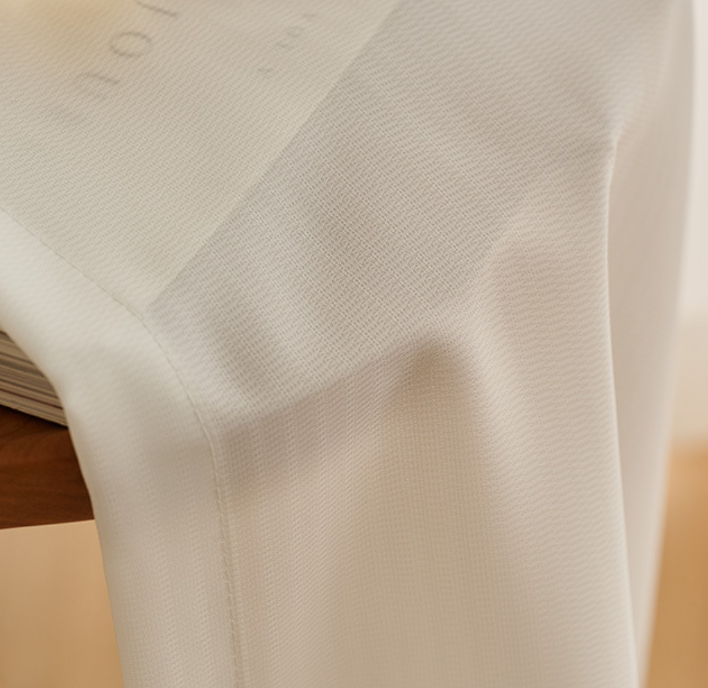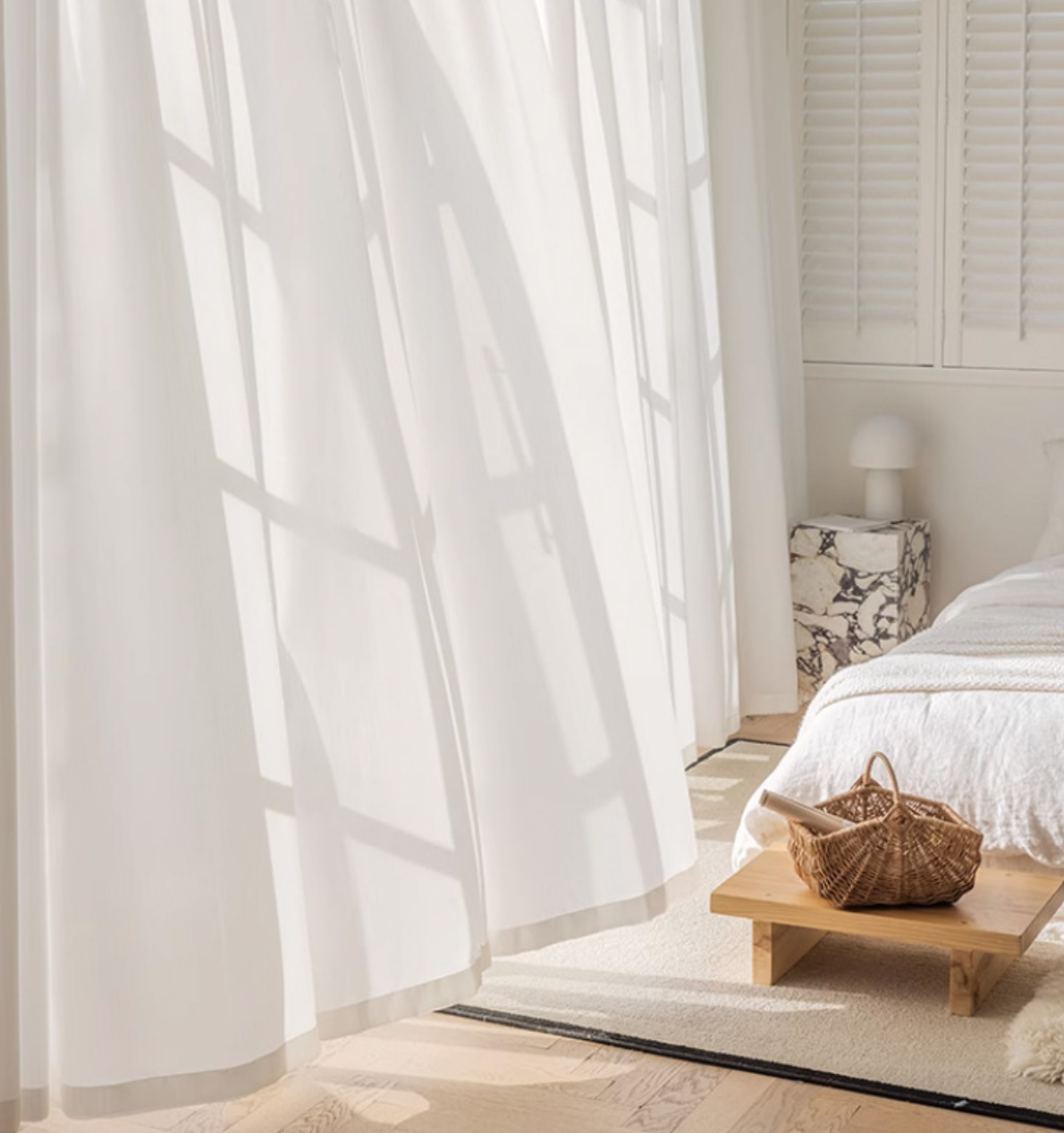 Voilage blanc uni ultra léger liseré beige salon chambre