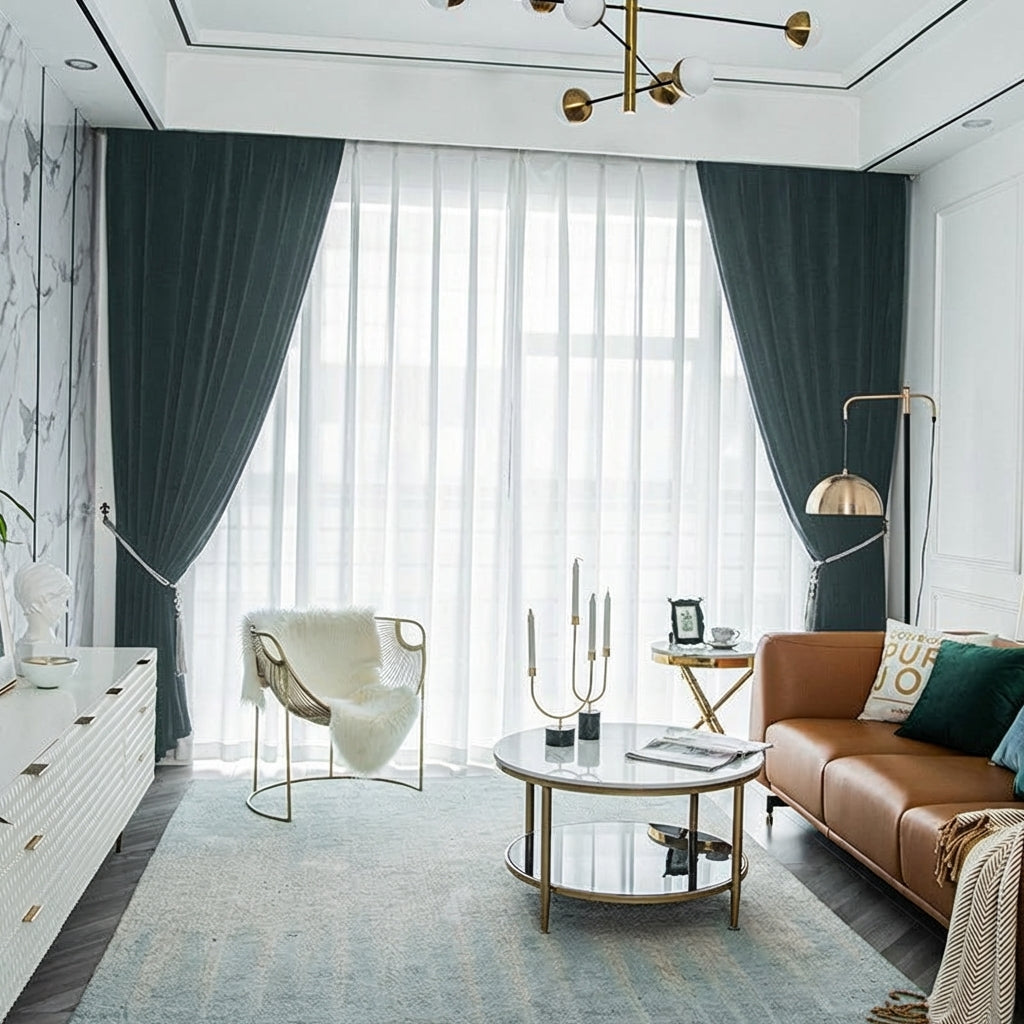 Rideau Occultant Velours Vert Eucalyptus Salon