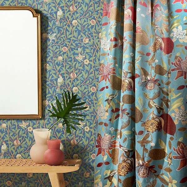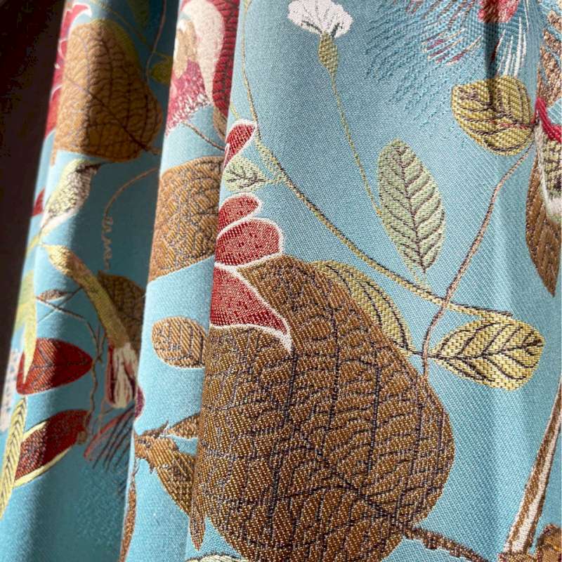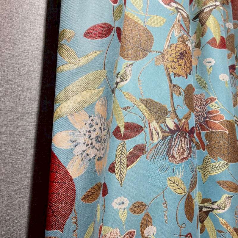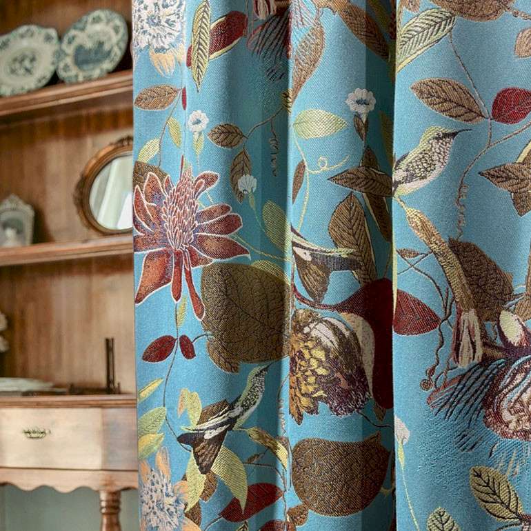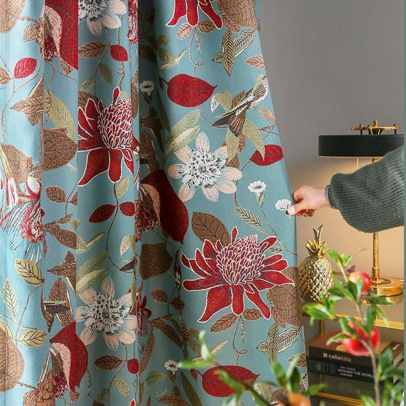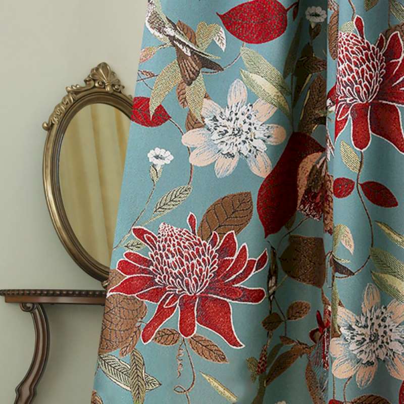 Rideau jacquard fleurs rouges et oiseaux style classique