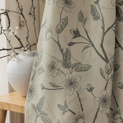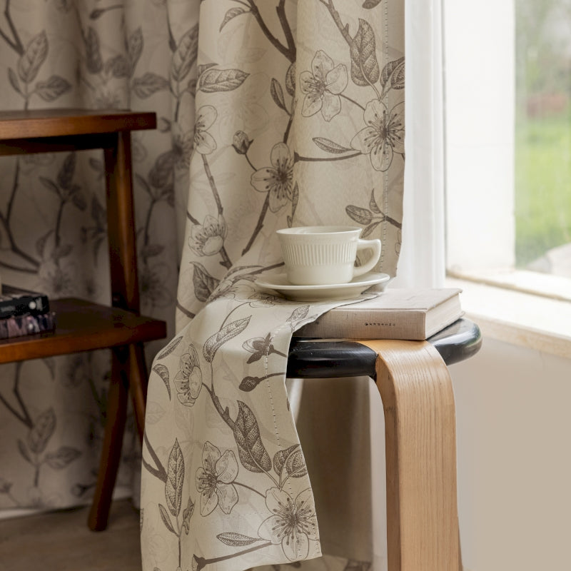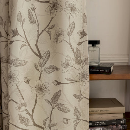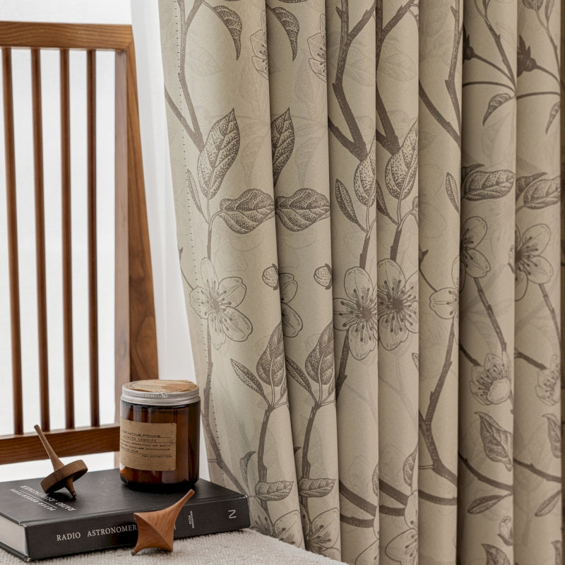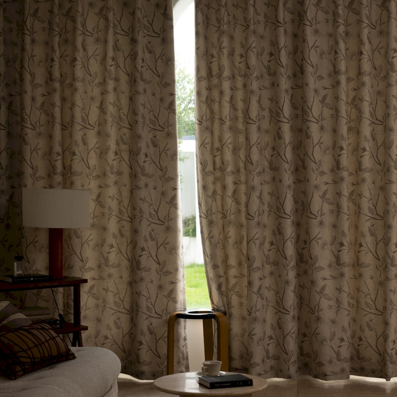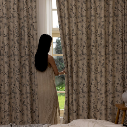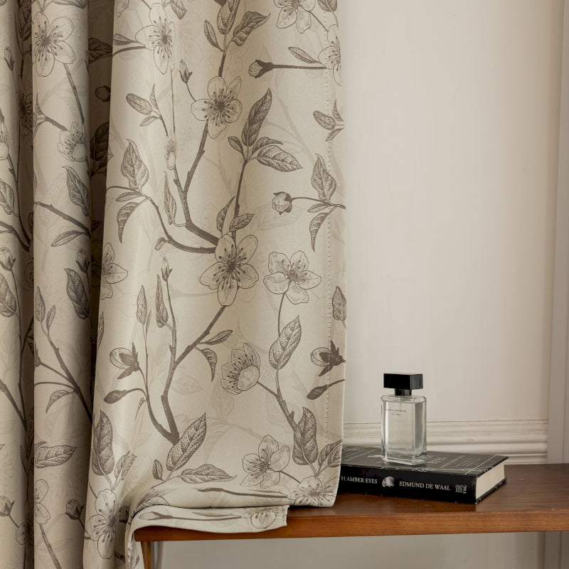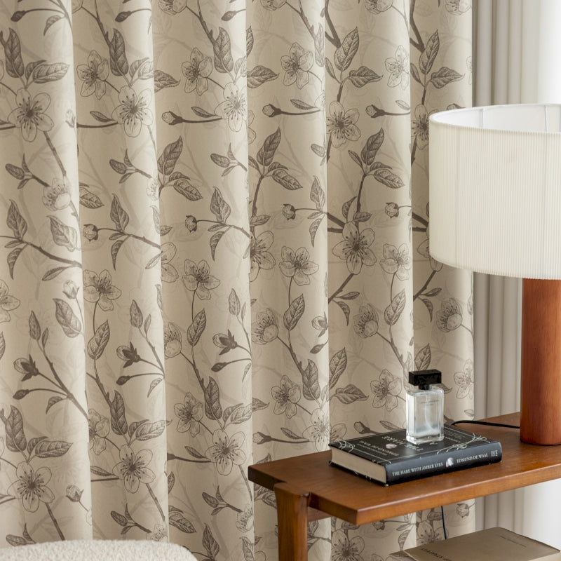 Rideau isolant imprimé fleurs beige et noir