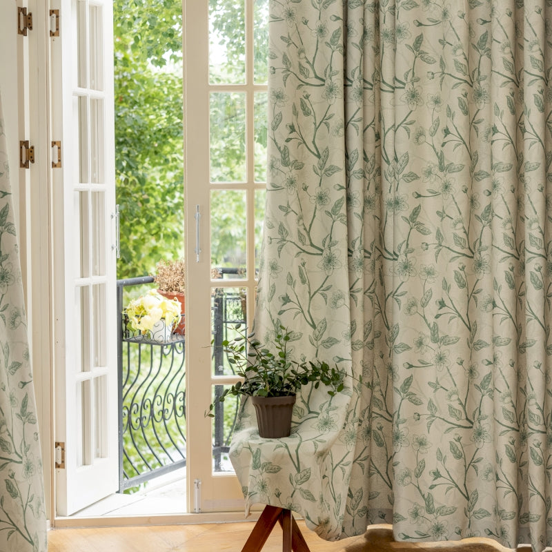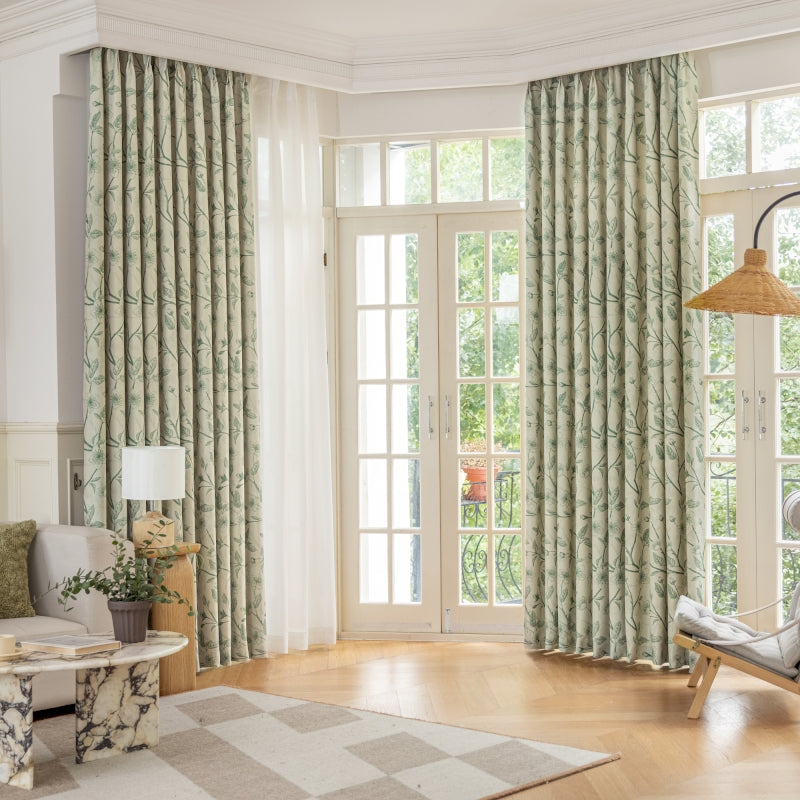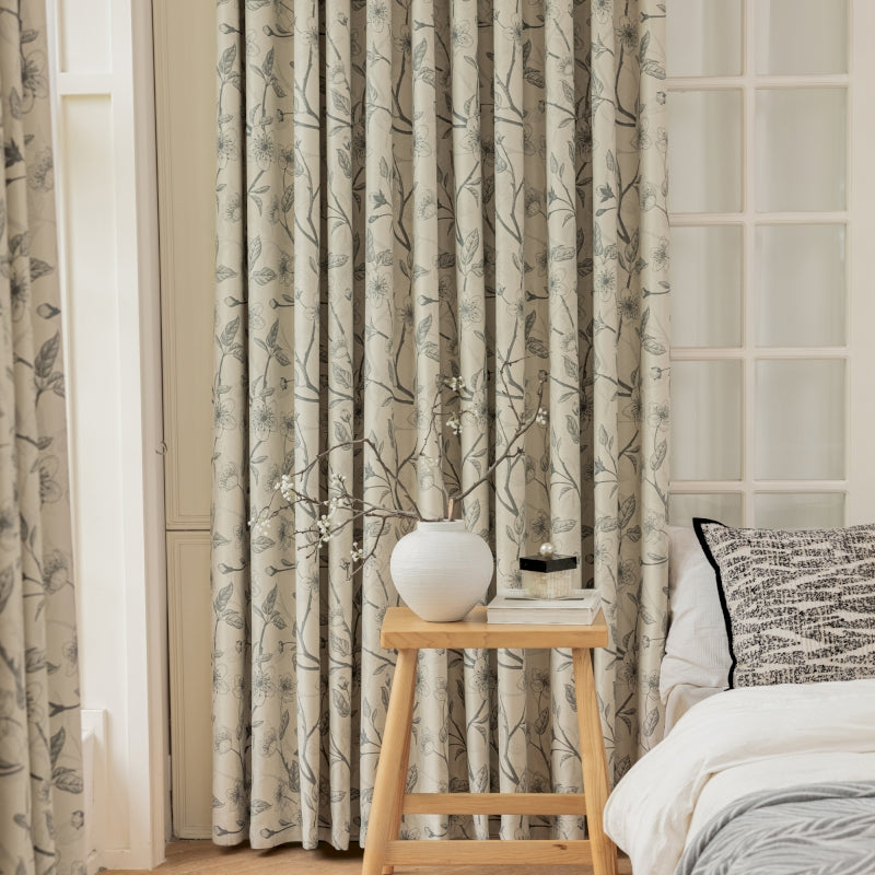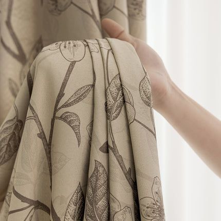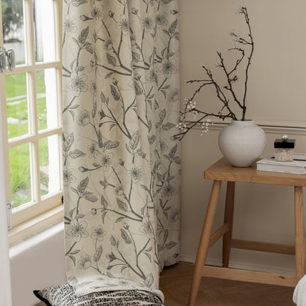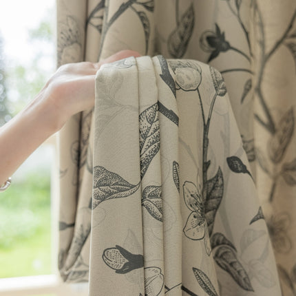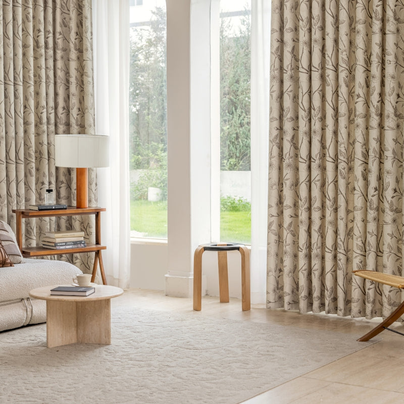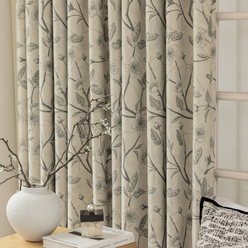 Rideau isolant imprimé fleurs beige et noir