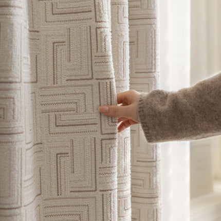 Embellissez votre déco intérieure avec Rideau isolant laine beige motif géométrique