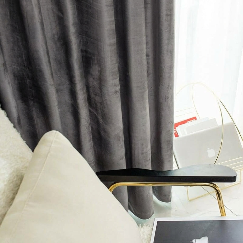 Rideau Occultant Velours Gris Foncé Chambre