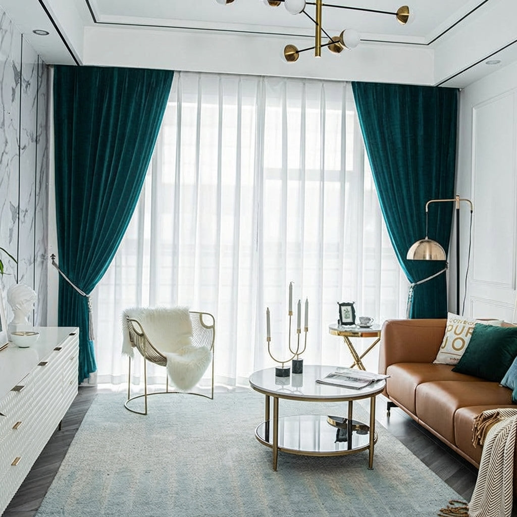 Embellissez votre déco intérieure avec Rideau Occultant Velours Vert Émeraude Salon